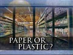 “As part of our ongoing series of reports on the environment, ‘America Goes Green,’ we take on the question that can make otherwise competent adults quake with fear. We’ve all been there. You come to the end of the checkout line and then comes that question: ‘Paper or plastic?’ For that one brief moment, we grocery buyers are made to feel like the fate of the planet hinges on our decision.”